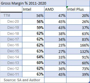 Typically, one of the negatives of not making your own chips is lower margins as can be seen with this Intel/AMD margin comparison.