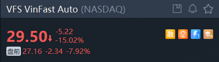 越南电动汽车制造商VinFast盘前跌近8%,此前已连跌四个交易日,累计下跌超64%。VinFast首席执行官黎氏秋水日前表示,对公司在纳斯达克上市后的股价波动并不担忧,称其相信VinFast的潜力,尤其是考虑到东南亚电动汽车生态系统正在迅速扩张。