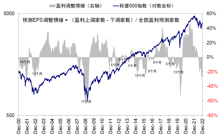 图表:回顾历史经验,主动去库存阶段盈利下调幅度(标普500指数12个月动态EPS)平均在7%左右,2008年金融危机和2020年疫情造成的影响更大