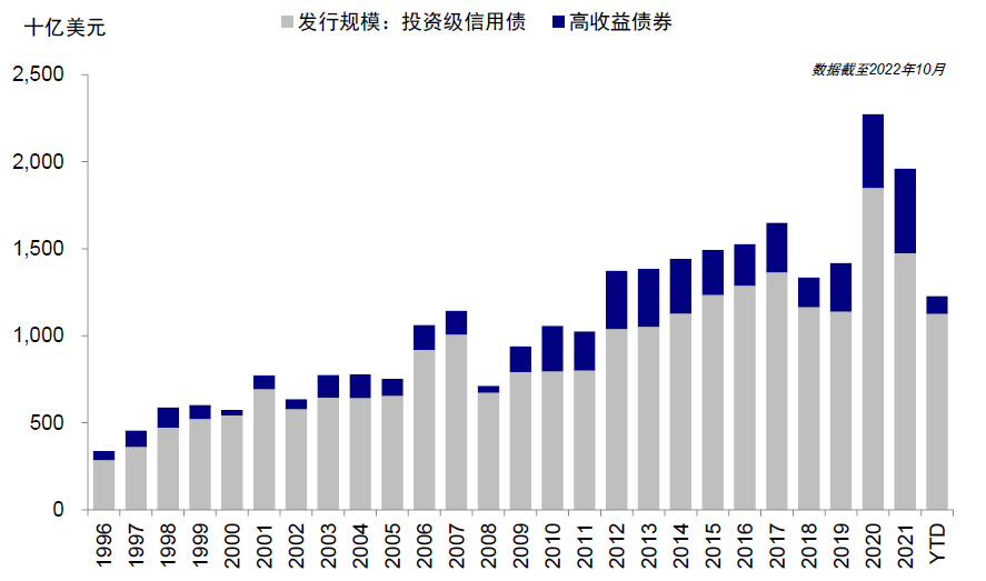 图表:根据SIFMA统计,三季度企业信用债发行规模2961亿美元,同比回落32.9%,环比回落3.9%
