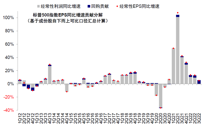 图表:回购对经常性EPS增速贡献5.6%,较二季度的3.3%继续抬升
