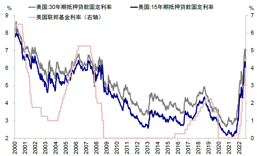 图表:当前30年期及15年期抵押贷款利率分别达6.5%和5.8%