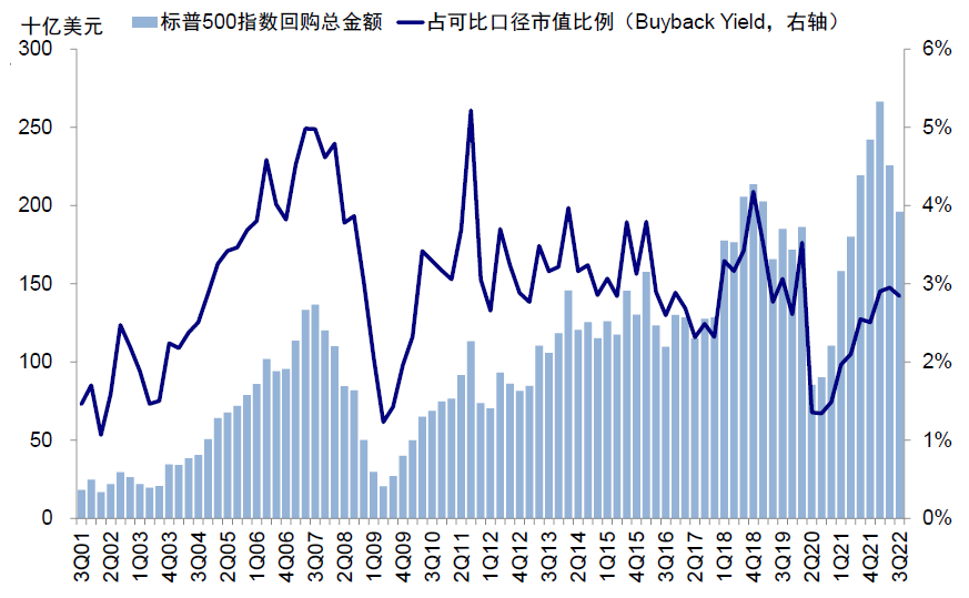 图表:已披露的回购金额较上季度继续回落,约1960亿美元,占市值比例降至2.8%