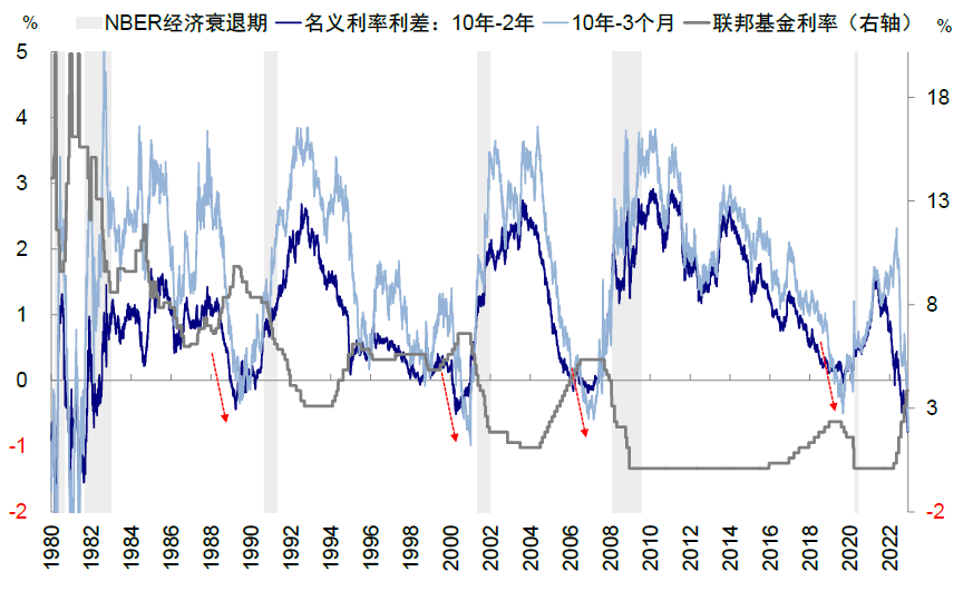 图表:3m10s利差于11月初开始倒挂,当前已倒挂~75bp