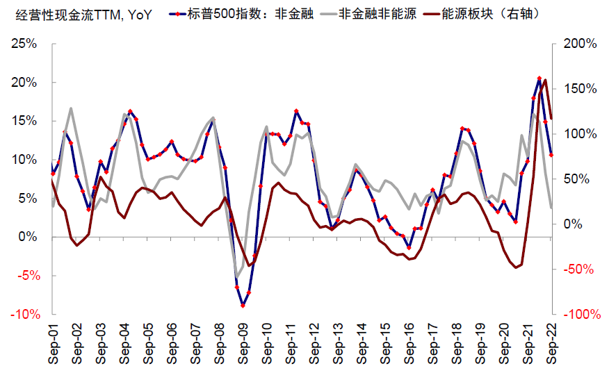 图表:三季度非金融板块经营性现金流同比(TTM)继续回落
