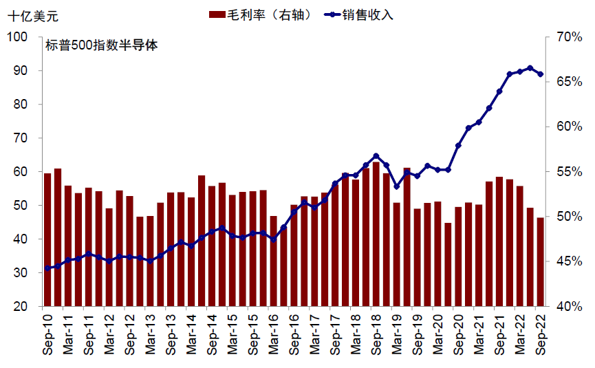 图表:三季度库存依然偏高的半导体板块销售收入已经下滑,且毛利率继续回落