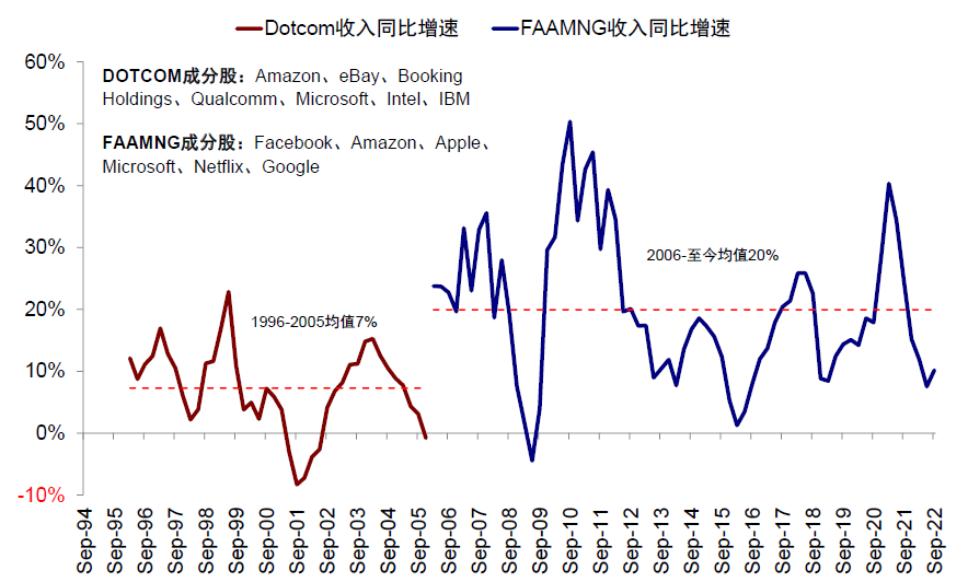 图表:三季度FAAMNG收入同比10.2%,低于2006年以来20%的均值