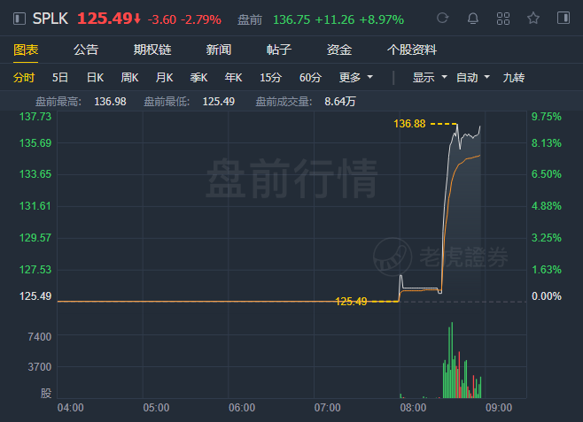 (June 22) Shares of Splunk Inc. are up 8% in premarket trading Tuesday after the software company announced that Silver Lake plans to invest $1 billion in the company through convertible senior notes.