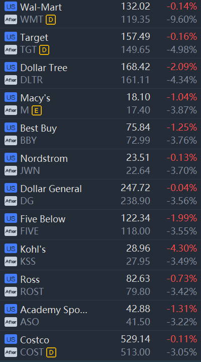 Shares of rivals including Target and Amazon.com also tanked after Walmart's warning, which signaled a "proverbial train wreck" for retailers, Burt Flickinger, managing director of Strategic Resource Group said.