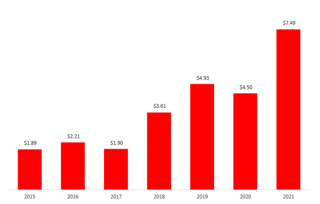 The reasoning behind this is that LULU would only need to grow revenue at 12% per year, assuming it hits its F'22 revenue target of $7.97B. As a company in the early innings of growth that is rapidly expanding its international market share, LULU will likely hit its target by 2026, if not earlier.