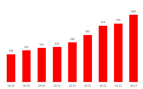 We ended the quarter with a total of600 stores across the globe,a milestone we are all extremely proud of. Square footage increased 19% versus last year, driven by the addition of 66 net new stores since Q2 of 2021. During the quarter, we opened 21 net new stores and completed six co-located optimizations.