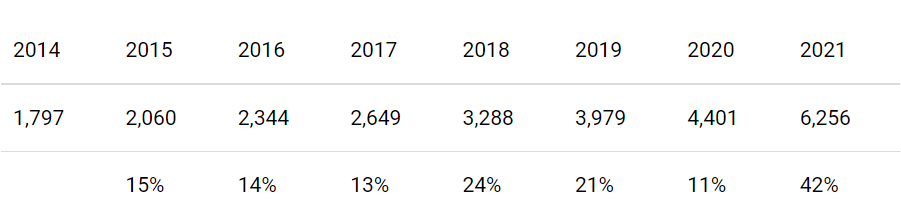 To put this into perspective, see LULU's historical revenue table below. Over the last 7 fiscal years, LULU has grown its revenue at a 20% CAGR.