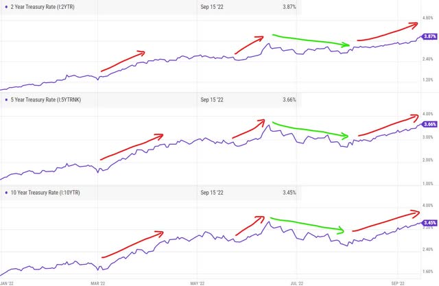 In the first half of Q3, Upstart's business would have gotten some relief as interest moderated somewhat; however, the second half of Q3 saw surging interest rates, as shown in the chart below. As of writing, the 2-yr treasury yield is inching towards 4%, and the 10-yr treasury yield is ~3.6%.
