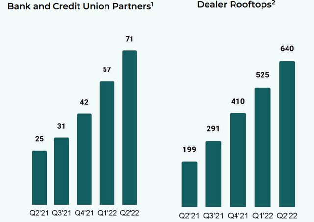 - Despite this volume contraction, Upstart is still operating at breakeven to positive free cash flow, adding new credit union partners to its lending marketplace, and expanding its auto dealership footprint.