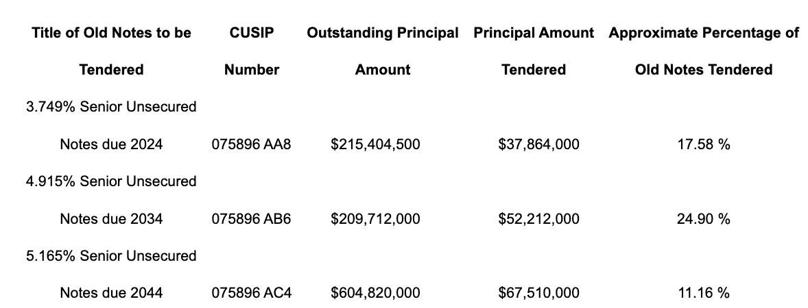 The extension reflects limited appetite by debt-holders in the debt swap, according to data supplied by the retailer (right hand column in chart below). Such limited appetite likely reflects the concern among debt-holders on Bed Bath & Beyond's survivability and getting paid back if the company should go bust.
