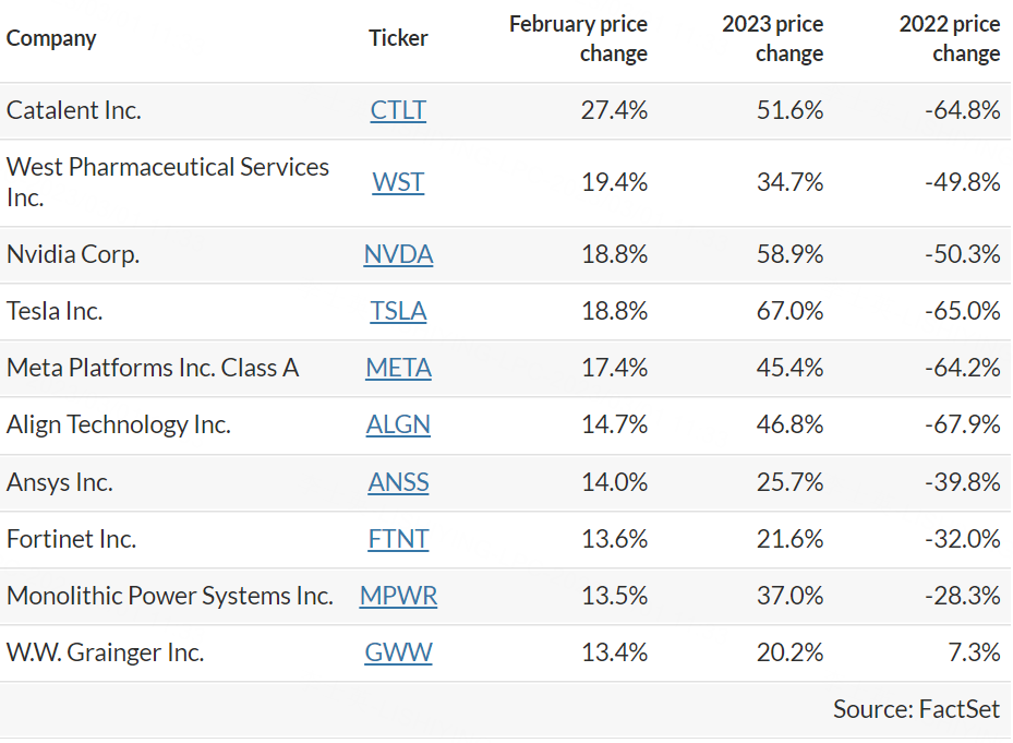 To accentuate the positive, here are the 10 best-performing stocks in the S&P 500 during February: