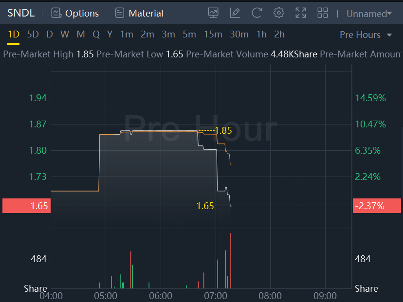 SNDL stocks changed from up to down in premarket trading Monday.