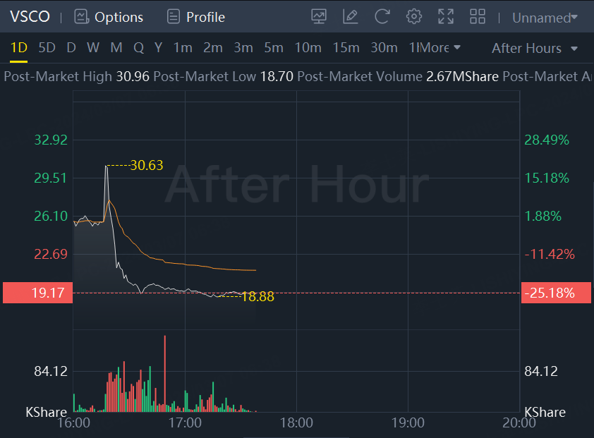 Shares of Victoria's Secret & Co. plummeted after hours on Wednesday after the intimate-wear maker forecast full-year sales that were below expectations, saying it was staying "conservative in the near term" amid a drop in demand in North America.