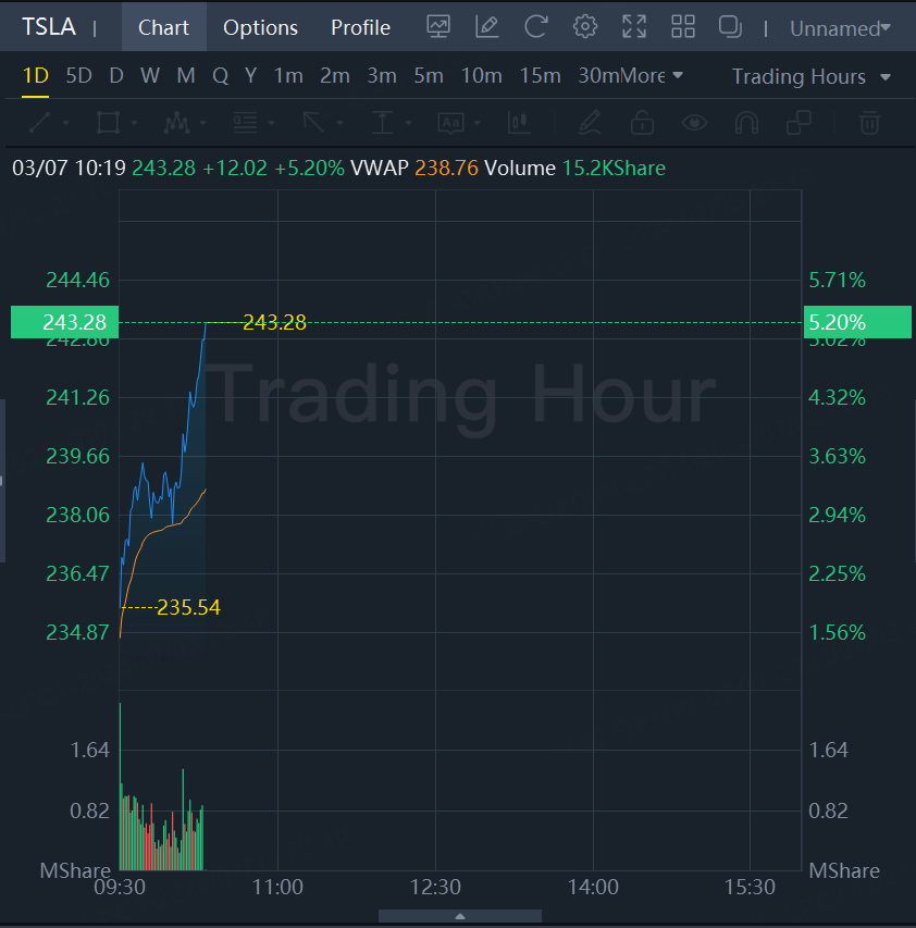 Tesla shares rose over 5% in morning trading after soaring 10% on Tuesday.