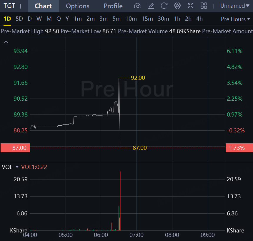Target shares fell 2% in premarket.