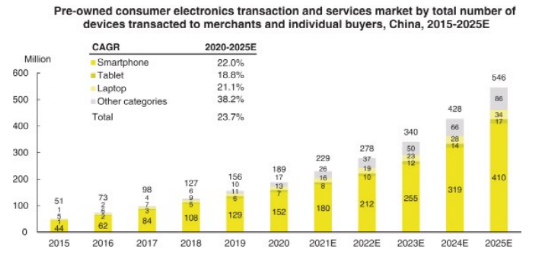 根據灼識諮詢的數據,中國擁有最大的二手3C電子交易設備市場,超過美國和歐洲的總和。