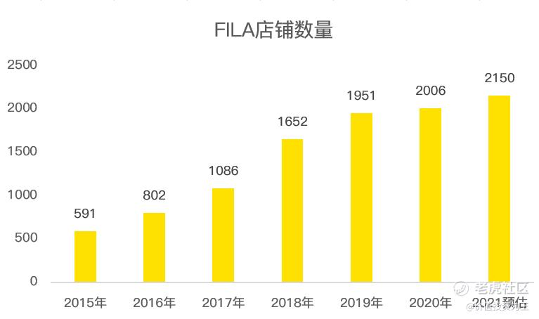 2020年,FILA品牌年營收174.5億元,超過主品牌安踏的157億,同時,店鋪數量也在不斷增加中!