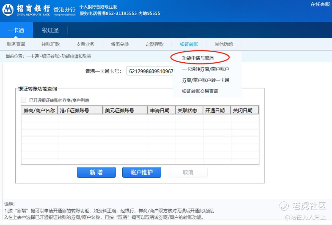 使用電腦-手機專業版-銀證轉賬-功能申請與取消-新增-選擇券商-輸入券商賬號-確認!