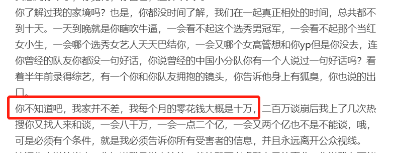 但是她認爲是有依據的,根據她的說法,目前拿的出實錘的共計有8個人小姑娘。沒人100萬賠償金。