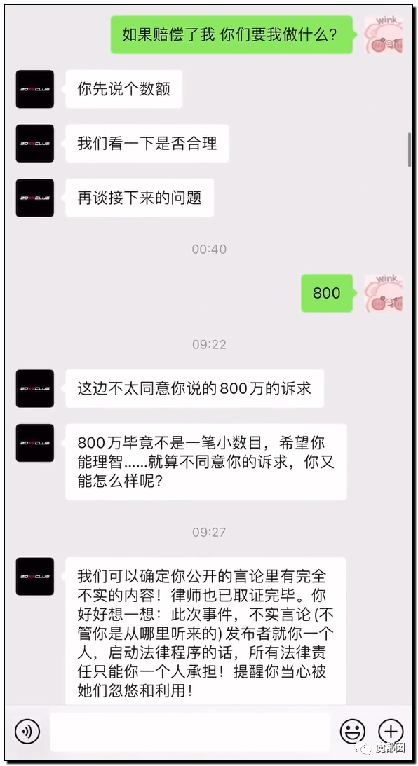 我們本來以爲以WYF的收入,800萬九牛一毛而已,但是顯然對方並不想付800萬,想100萬解決所有問題。