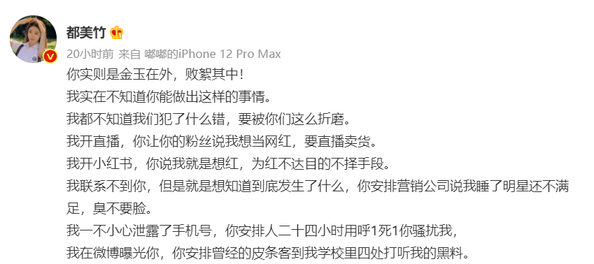 都美竹徹底爆發,爆了很多的料,對男方發了檄文: