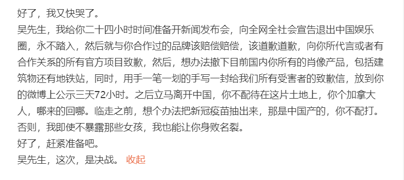 都美竹無奈之下,甩出長文,疑似看到了MJ和QJ的實錘???