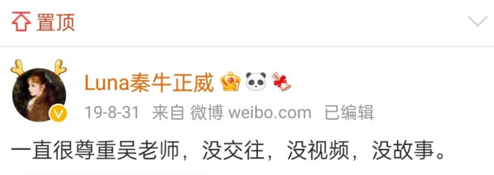 而很多和WYF有過一些傳聞的藝人紛紛有動作,比如秦牛正威重新置頂快要2年前的微博: