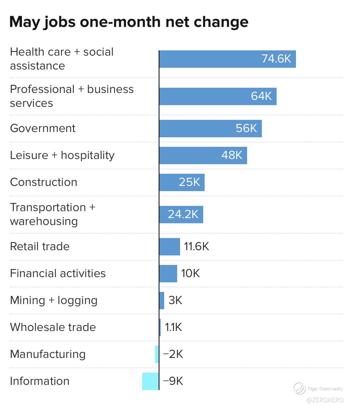 The U.S. payrolls report for May blew past expectations, supported by strong jobs gains in the professional and business services sector β as well as a jump in government employment.