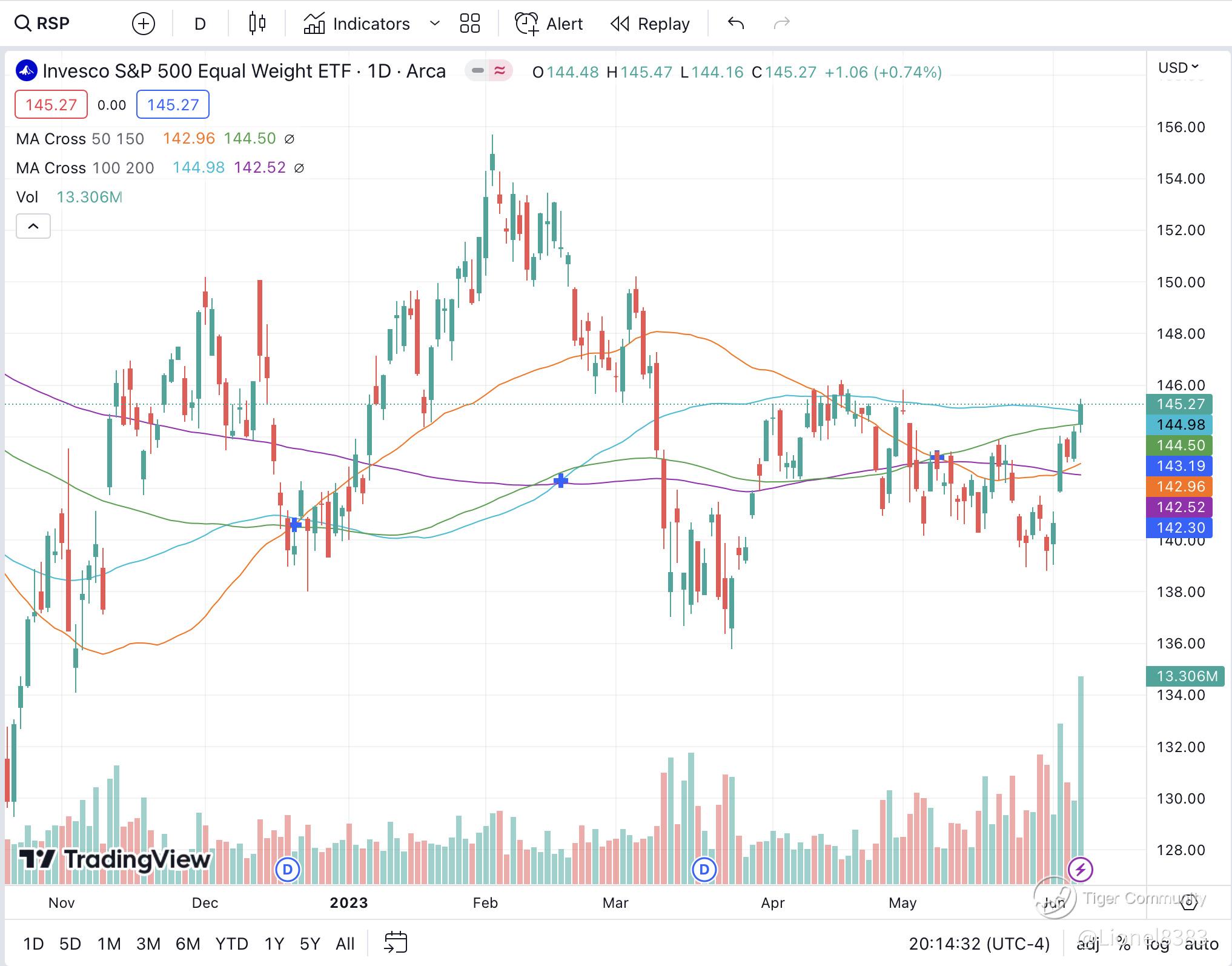 This resulted in the weighted S&P 500 to lose 0.38% on Wednesday. On the other hand, the equal weighted S&P 500 actually gained 0.74%, showing broader market relative strength.