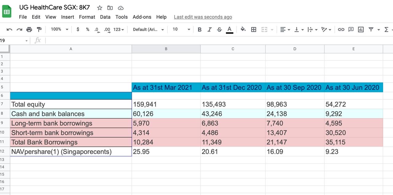 $UG HEALTHCARE CORPORATION LTD(8K7.SI)$One more quarter and we will get UG full year results. Current cash balances is S$60m, expecting cash balance to hit between$80-$85m. Expecting UG to probably reward investor in around 4-5 cents. That will cost around $17-$20m. Still have healthy $60m cash for expansion.
