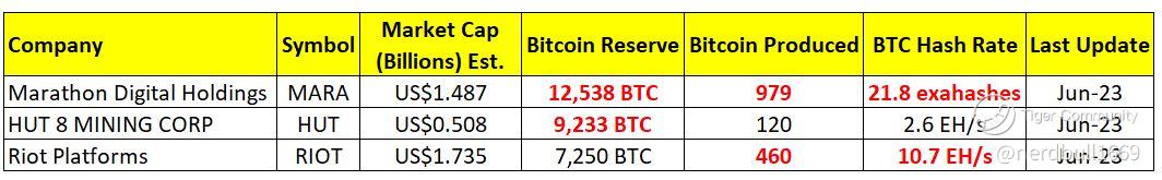 Bitcoin Operational Updates For MARA, RIOT, HUT as of June 2023