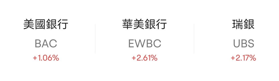 今天美股銀行股集體走高,花旗、巴克萊、華美銀行、桑坦德銀行漲超3%,美國銀行、富國銀行、荷蘭國際集團、匯豐控股漲超2%。