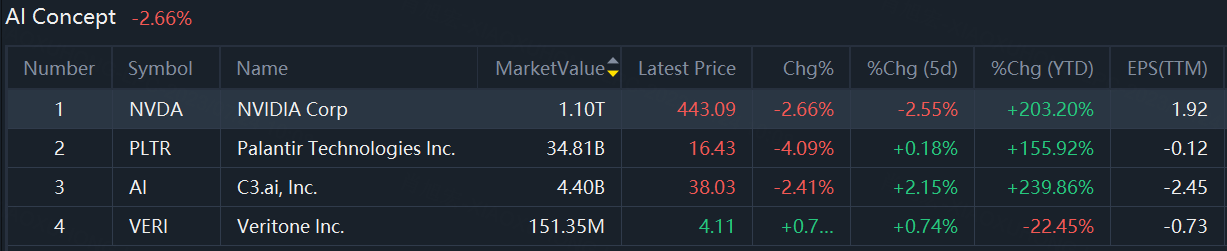 As of the close on July 21, the concept of AI fell by 2.66% in the past five trading days.