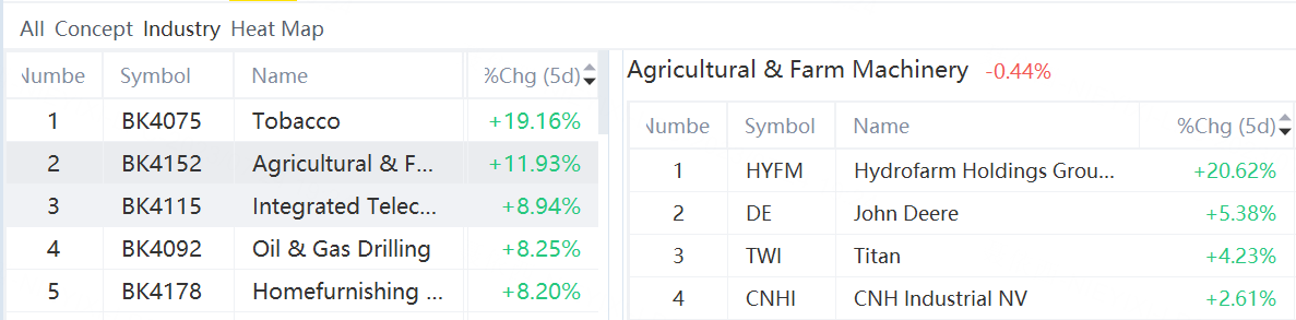 It was a mixed week in the stock market as investors assessed earnings and anxiously await this week’s Fed decision. The best-performing concepts are tobacco, agricultural & farm machinery and integrated telecommunication.