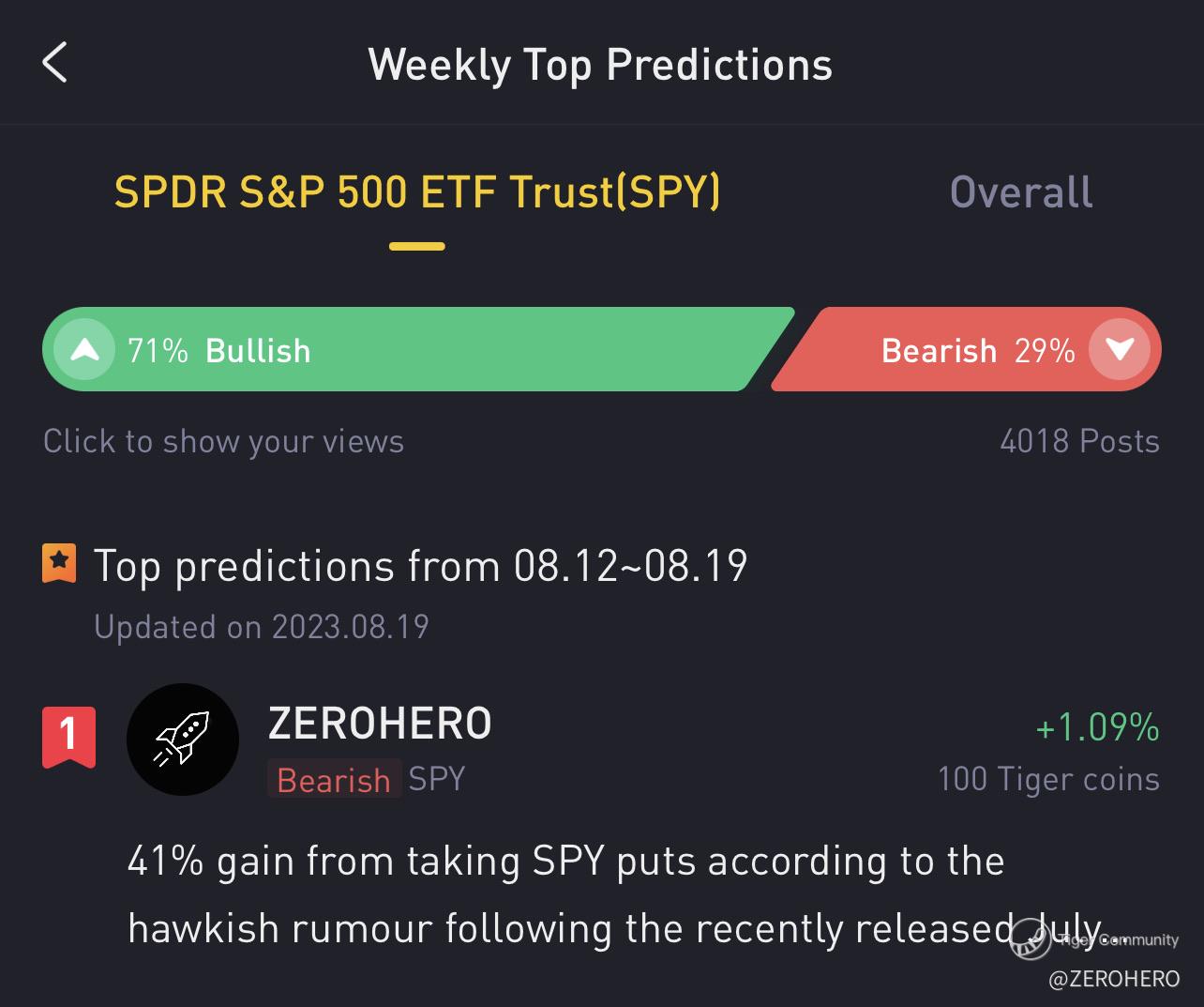Thanks to Tiger for awarding the weekly top predictions for SPY again. Most importantly, a big congrats for all to have survived another brutal onslaught of the stock market and soaked patiently in this August bloodbath.