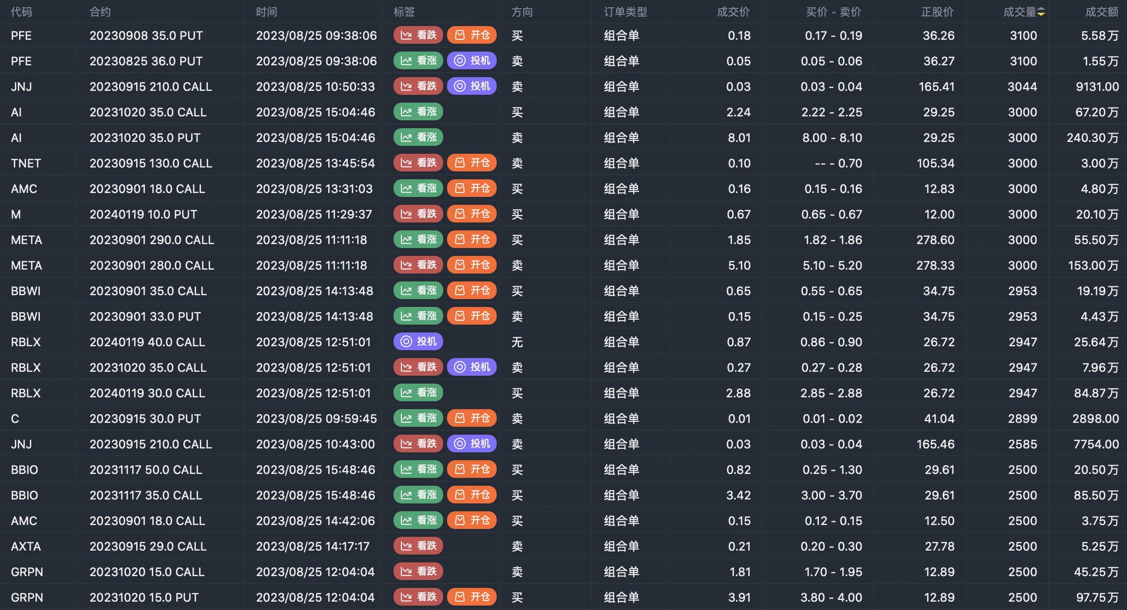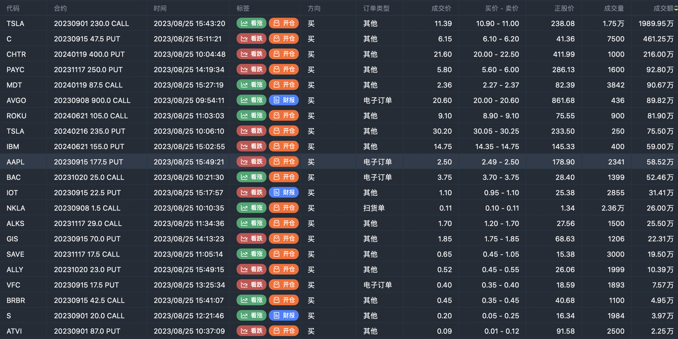 Note: This image data is from Tiger PC. This screening is a significant buy open position for options contracts in the market. The purchase of a call option means that the trader believes that the underlying has upward momentum, and the purchase of a put option means that the trader believes that the underlying has downward momentum. These contract openings typically indicate significant activity in the underlying stock, including whether the trader is willing to accumulate a long or short option position.