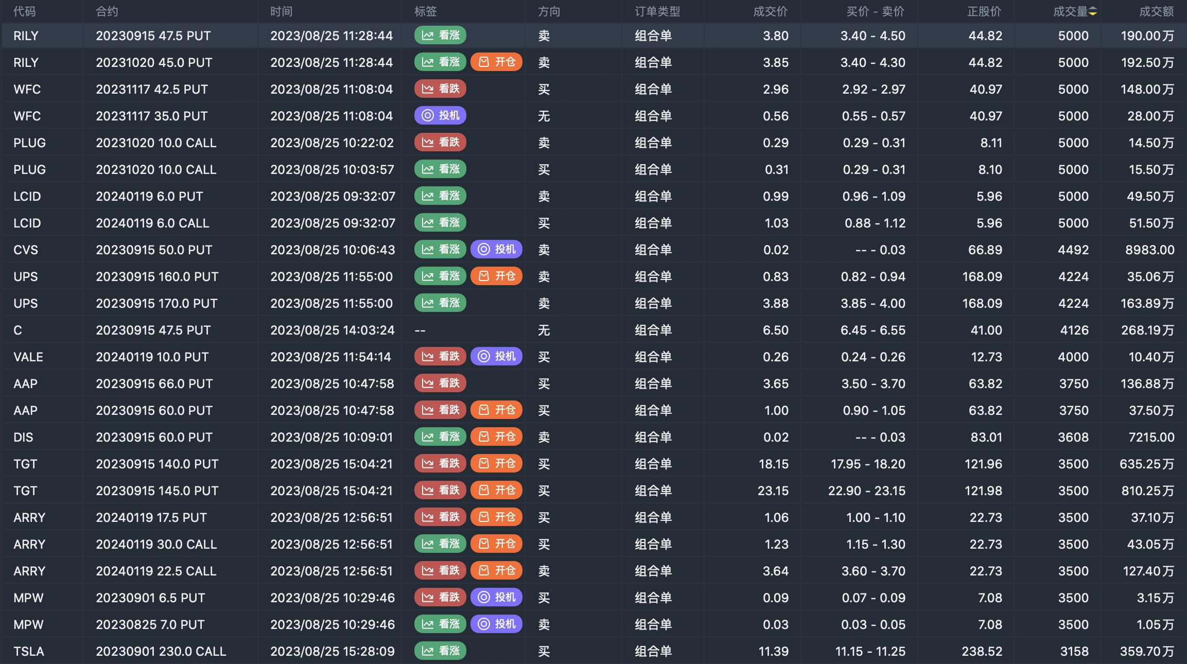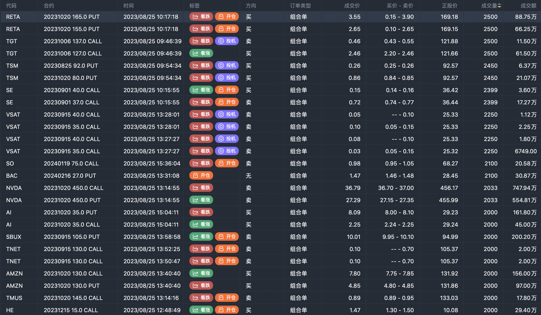 Note: This image data is from Tiger PC. This screening is a significant portfolio of options contracts in the market. Portfolio opening includes a variety of underlying trends, requiring traders to further master the basic knowledge of options for analysis and judgment.