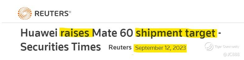• On Tue, 12 Sep 2023, China’s official media “Securities Times”, Huawei has raised the 2nd half shipment target for its Mate 60 series smartphone by +20%.