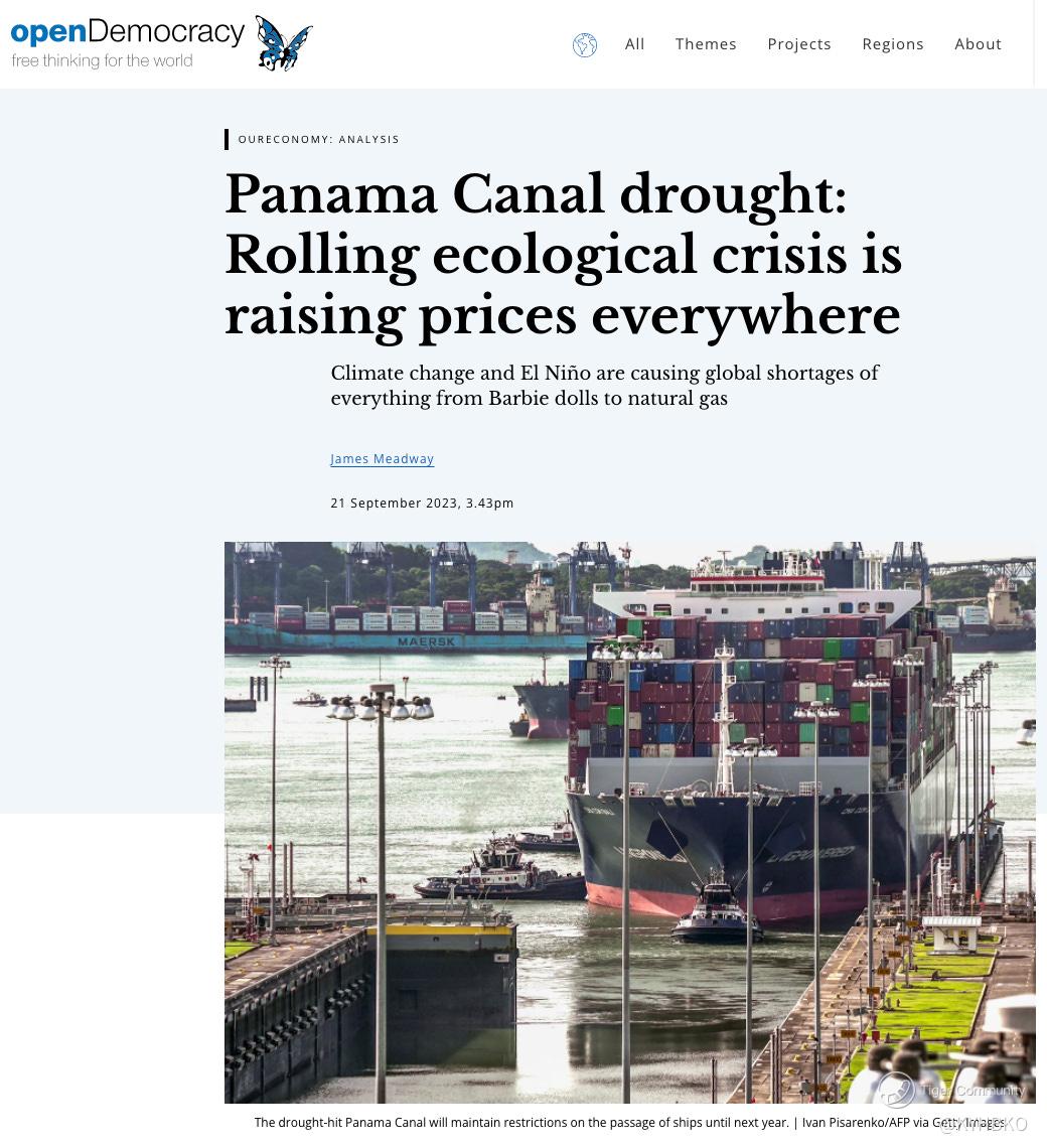 This is reported by Open Democracy pertaining to the Panama Canal drought.