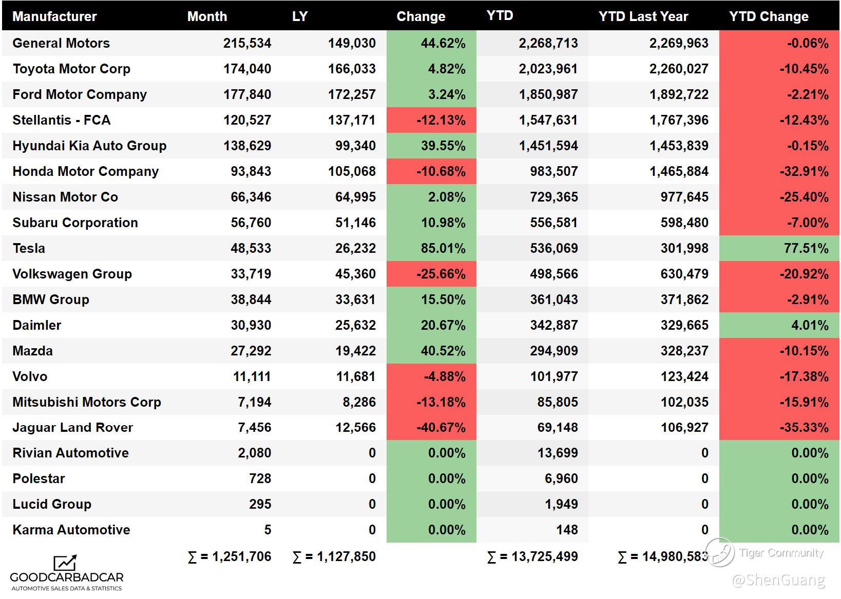 The enormousness of the car market, despite conventional car sales being in decline, can be demonstrated in the breakdown of sales by manufacturer in December 2022's data: