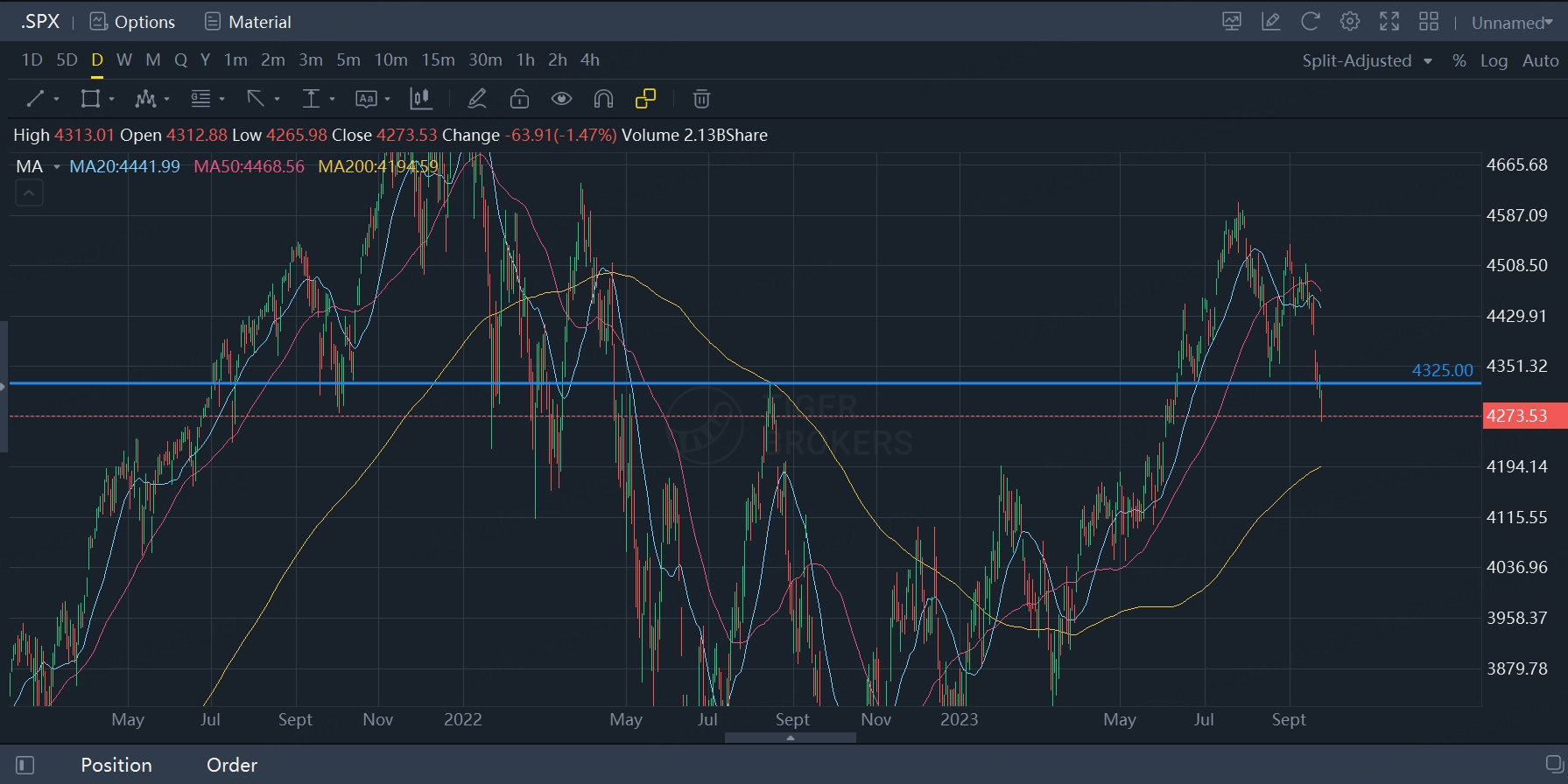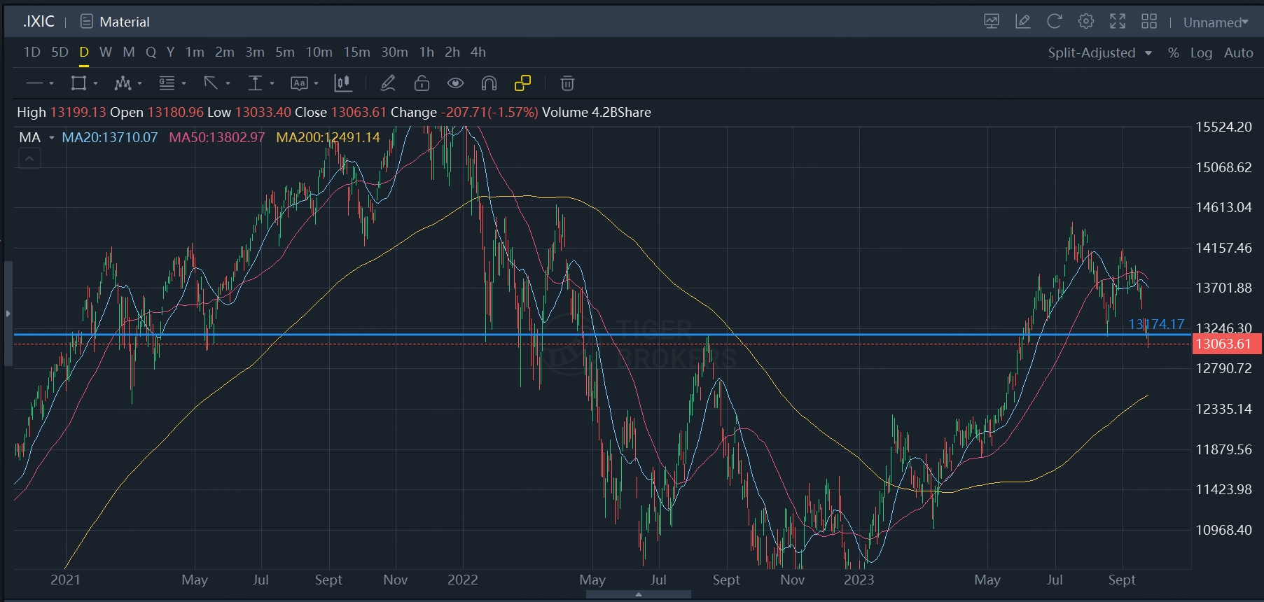 $S&P 500(.SPX)$ closed at 4273.53, below the key support level of 4300; $NASDAQ(.IXIC)$ fell below 13100 yesterday.