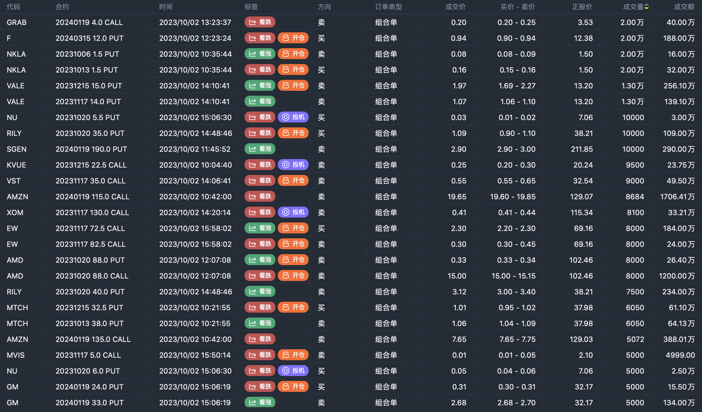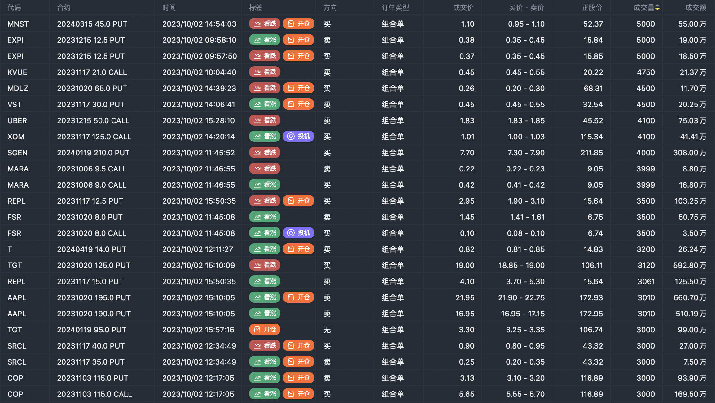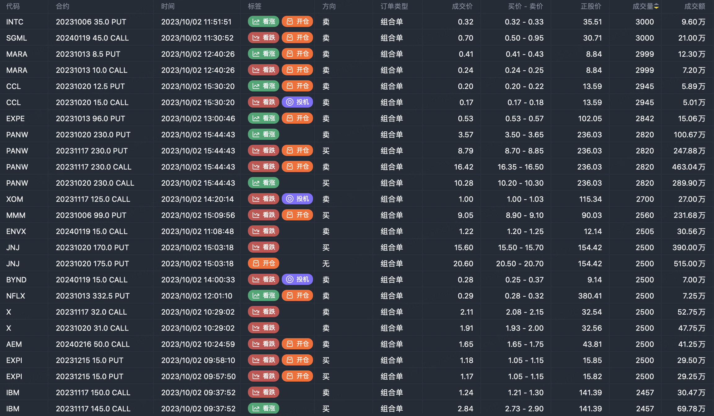 Note: This image data is from Tiger PC. This screening is a significant portfolio of options contracts in the market. Portfolio opening includes a variety of underlying trends, requiring traders to further master the basic knowledge of options for analysis and judgment.