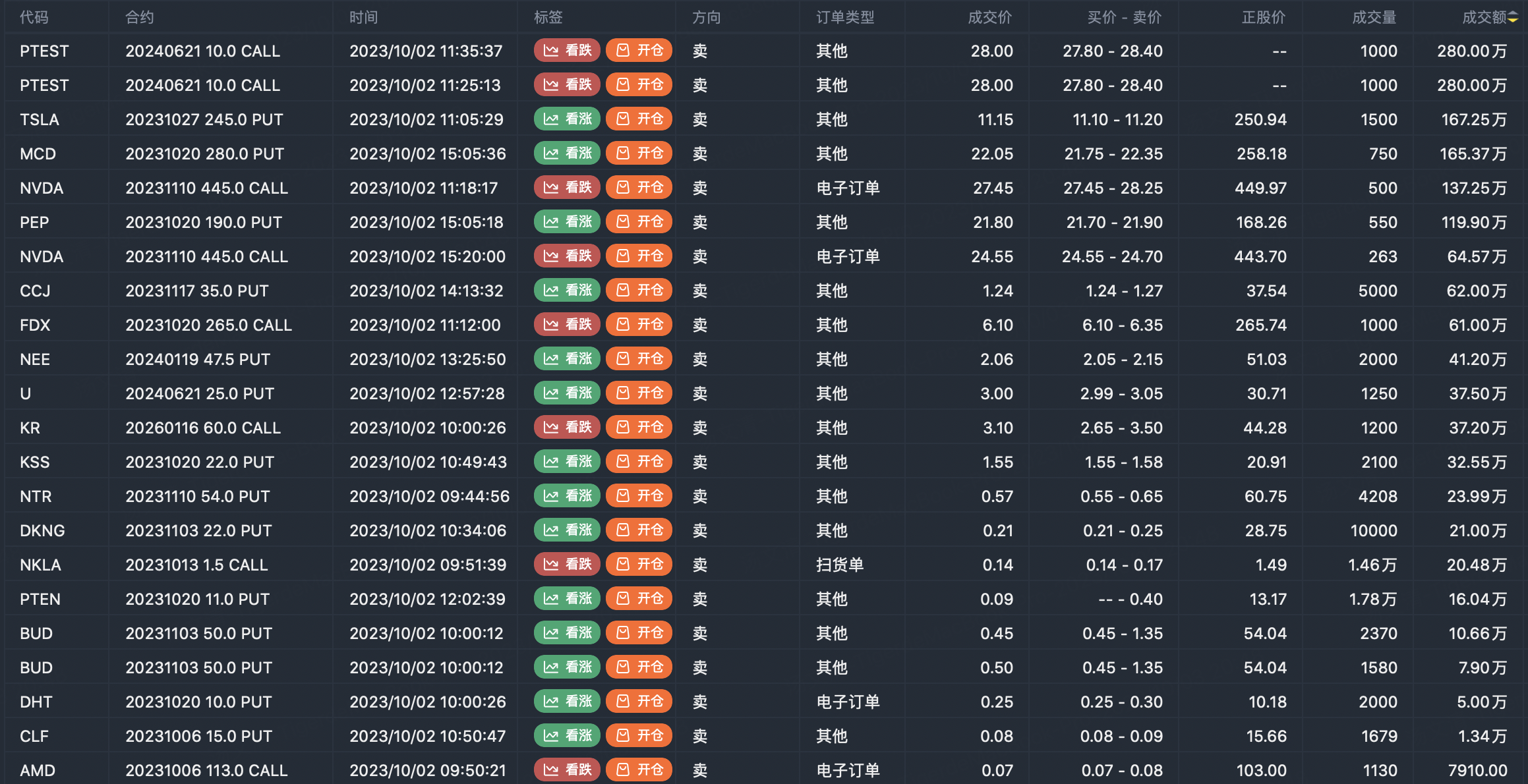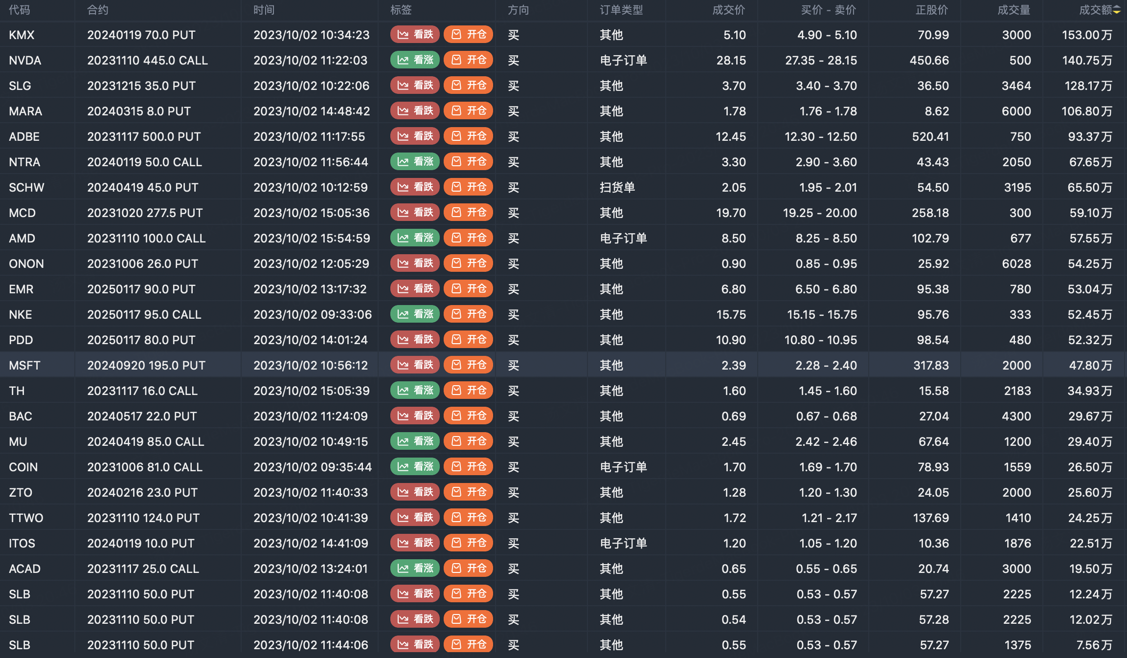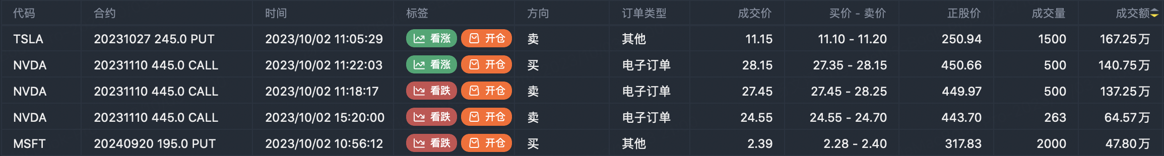Note: This image data is from Tiger PC. This screen is a significant sell open position for an option contract in the market. A sell of a call option means that the trader believes that the underlying trend has peaked, and a sell of a put option means that the trader believes that the underlying trend has bottomed. These contract openings typically indicate significant activity in the underlying stock, including whether the trader is willing to accumulate a long or short option position.