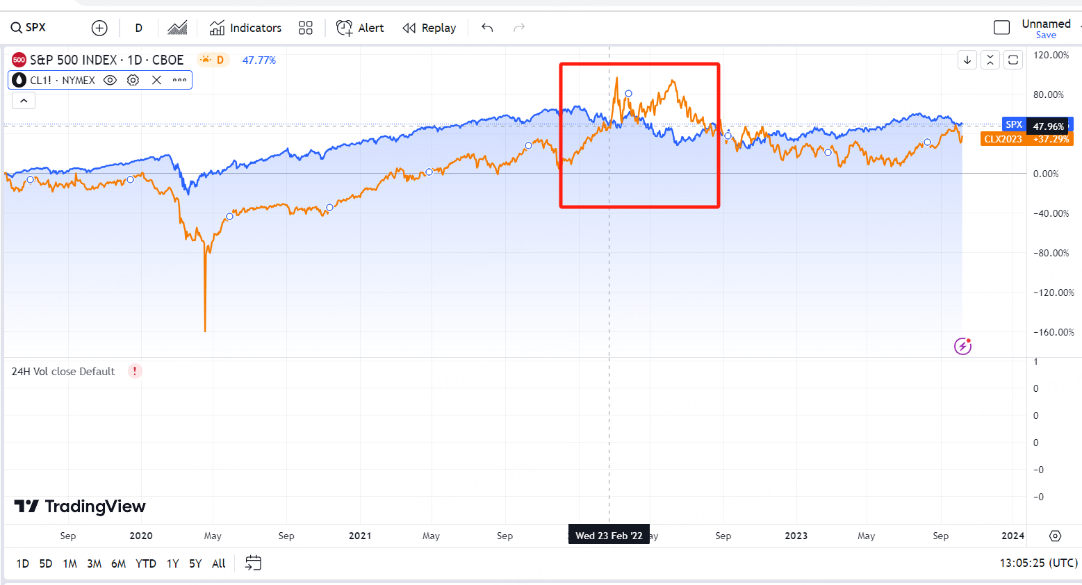 The bears compare the price trend of $S&P 500(.SPX)$ and oil prices $WTI Crude Oil - main 2311(CLmain)$