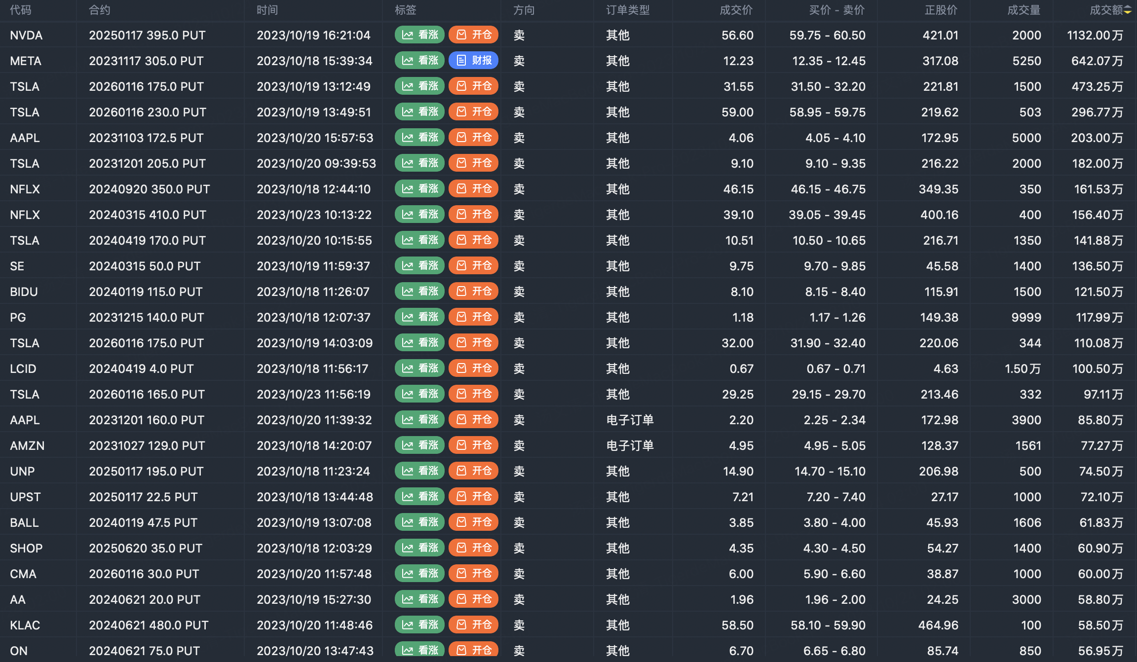 A put option, as its name suggests, represents the right to short a stock. A trader buying a put option usually indicates a bearish trend in the stock, while selling a put option indicates that the trader wants to buy the stock at a certain strike price, or believes that the stock price will not fall below a certain strike price for a certain period of time, thereby earning a premium.